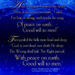 The Wrong Shall Fail, The Right PrevailDecember 5, 2022-Christmas Bells And in despair I bowed my head;"There is no peace on earth," I said;"For hate is strong,And mocks the song Of peace on earth, good-will to men!"Then pealed the bells… Read More