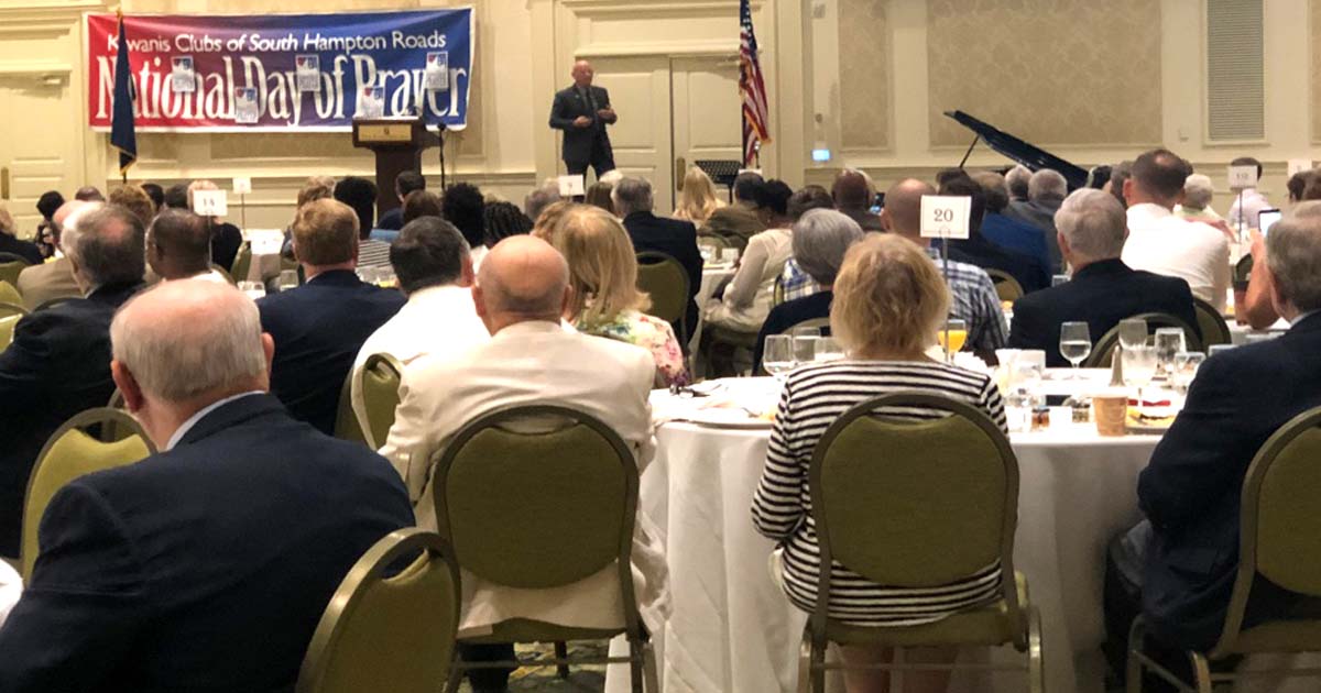 Carey Woodruff, Executive Vice President, represented FACE at the Kiwanis Clubs of South Hampton Roads National Day of Prayer Breakfast held in Virginia Beach, Virginia. Carey offered the prayer for the youth of our nation. This event was the 26th annual prayer breakfast sponsored by the Hampton Roads Kiwanis Clubs and nearly 250 individuals gathered to pray for our nation. FACE also donated a copy of Noah Webster’s Value of the Bible as a gift of appreciation for the guest speaker, RADM William “Dean” Lee.